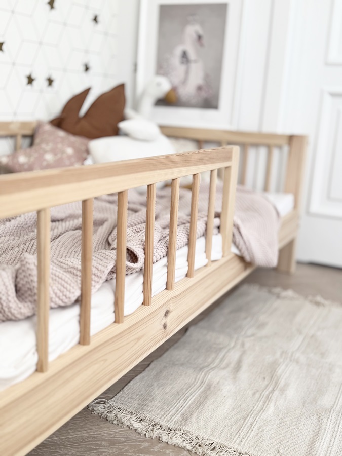 Klassisches Holzbett CELINO 🌲 ist eine Investition für viele Jahre — gefertigt aus massivem, nach Wald duftendem Holz, verbindet es Langlebigkeit mit einem zeitlosen Stil ✨. Seine moderne, universelle Form fügt sich perfekt in jedes Kinderzimmer ein und schafft eine gemütliche, harmonische Umgebung 💛🌿.