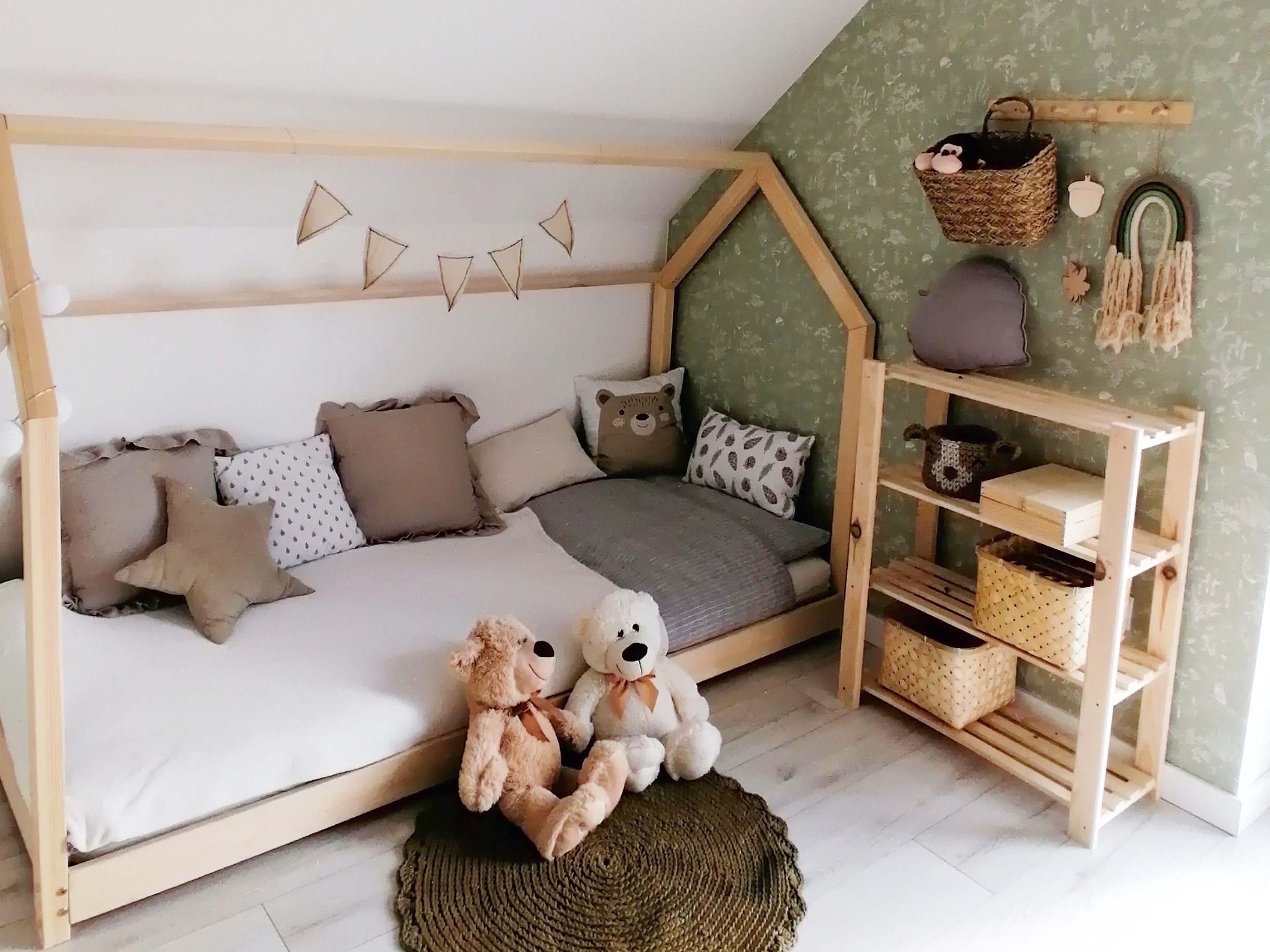 Das Hausbett erfüllt diese Kriterien zweifellos. Aufgrund seiner Konstruktion können sich Kind und Eltern sicher fühlen. Hausbetten haben standardmäßig 3 cm hohe Beine, so dass keine Gefahr besteht, dass das Kind beim Schlafen oder Spielen herunterfällt. Darüber hinaus verfügt es über eine Schutzbarriere, die eine zusätzliche Garantie bietet. Das Bett besteht aus Holz, ist also stabil und langlebig und garantiert einen gesunden Schlaf Ihres Kindes. Die Form des Hauses regt die Fantasie der Kinder an und ermöglicht es Ihnen, Ihre eigene, einzigartige Ecke zu schaffen. Die Einrichtung eines solchen Hauses regt die Kreativität und Fantasie des Kindes an. Unsere kleinen Kunden schaffen oft ihren eigenen Dschungel, andere entscheiden sich für eine wahrhaft königliche Atmosphäre.